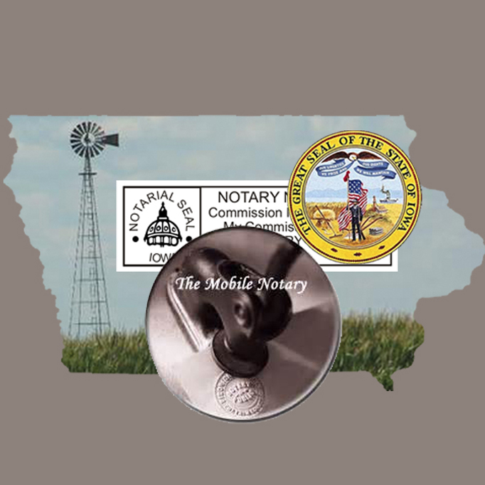 ask about fee schedule for notarizing documents (state of Iowa only — proof of identification required).